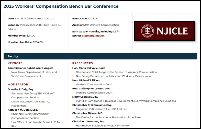 Managing Partner, Chris DiGirolamo, spoke at the NJ State Bar Association Workers’ Compensation Bench Bar Seminar on December 16, 2025. Mr. DiGirolamo spoke about the ethics of AI in the Workers’ Compensation field, using the movie Wicked as a theme for the presentation.